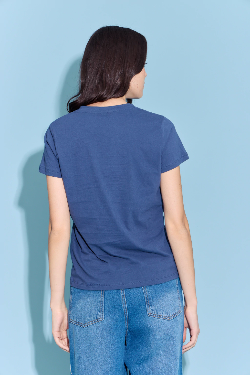 Remera 100% algodón con escote en v y mangas cortas. Fit recto para un estilo clásico y versátil.