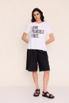 Vestido de algodón estampado tipo túnica, escote en V, recorte horizontal y mangas globo. Bolsillos y tajos laterales. Fit oversize holgado para un estilo cómodo y moderno.